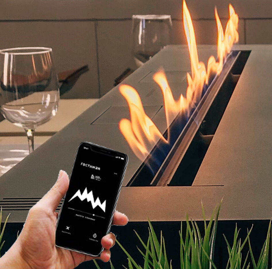 Автоматический биокамин Premium с настоящим живым огнем для установки в любом помещении. Не требует вытяжки или дымохода. Работает на жидком биотопливе. Дистанционное управление. LCD-дисплей. Приложение на смартфон, управление по Wi-Fi, возможность подключения к системе «Умный дом»Корпус не нагревается - можно встроить в любую, даже не жаростойкую поверхность. Встроенная система охлаждения - нет необходимости в установке дополнительных вентиляционных решеток. Топливо можно оставлять внутри топливного бака.