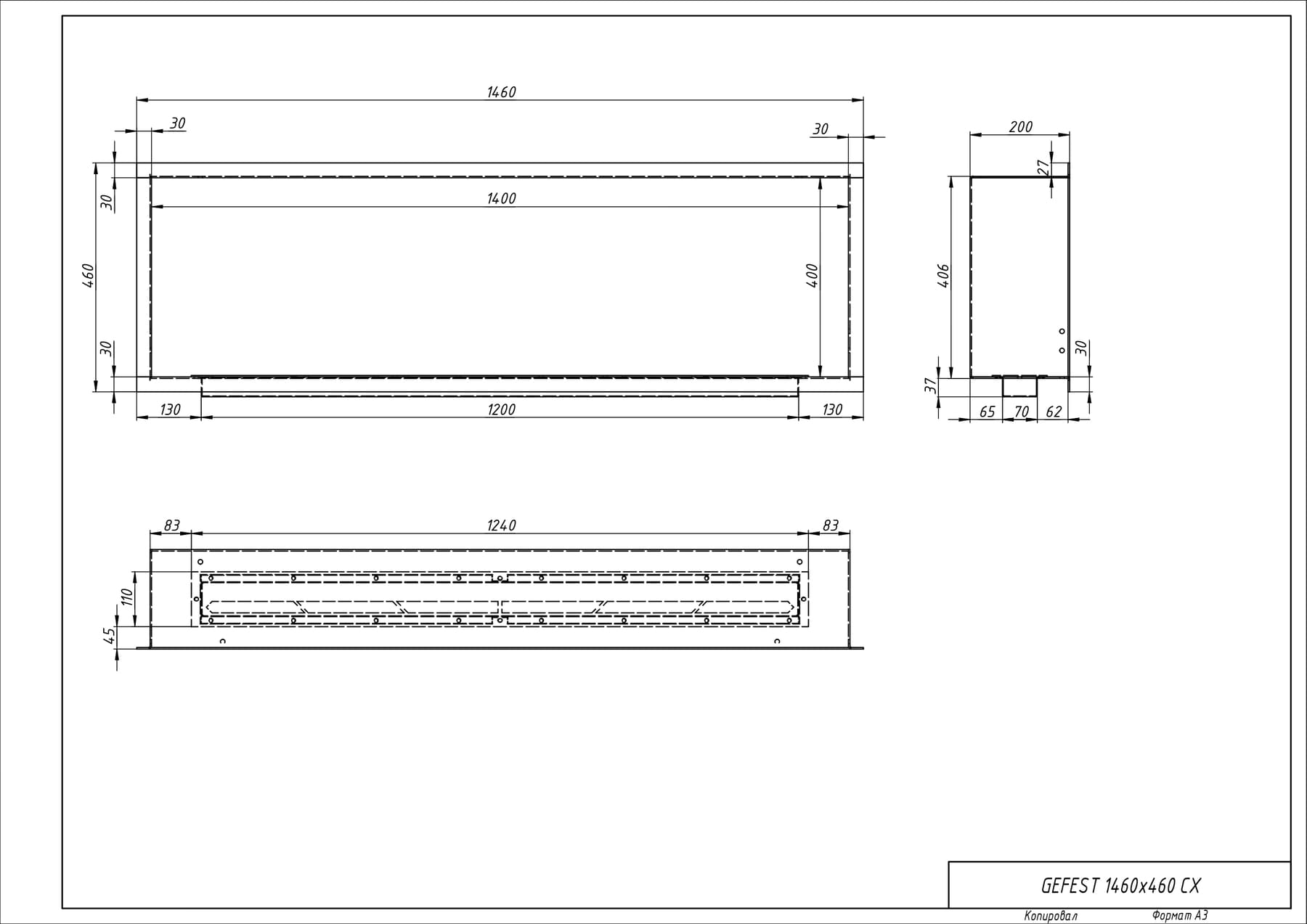 Встраиваемый биокамин «Гефест 1460V» изготовлен из стали и нержавеющей стали, окрашен термостойкой порошковой краской.