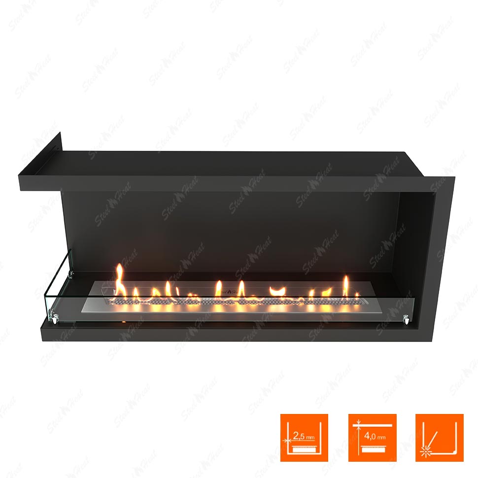 Встраиваемый Биокамин угловой SteelHeat Leader 1000 левый предназначен для встраивания в глухие ниши из гипсокартона, кирпича, пеноблоков, бетона.