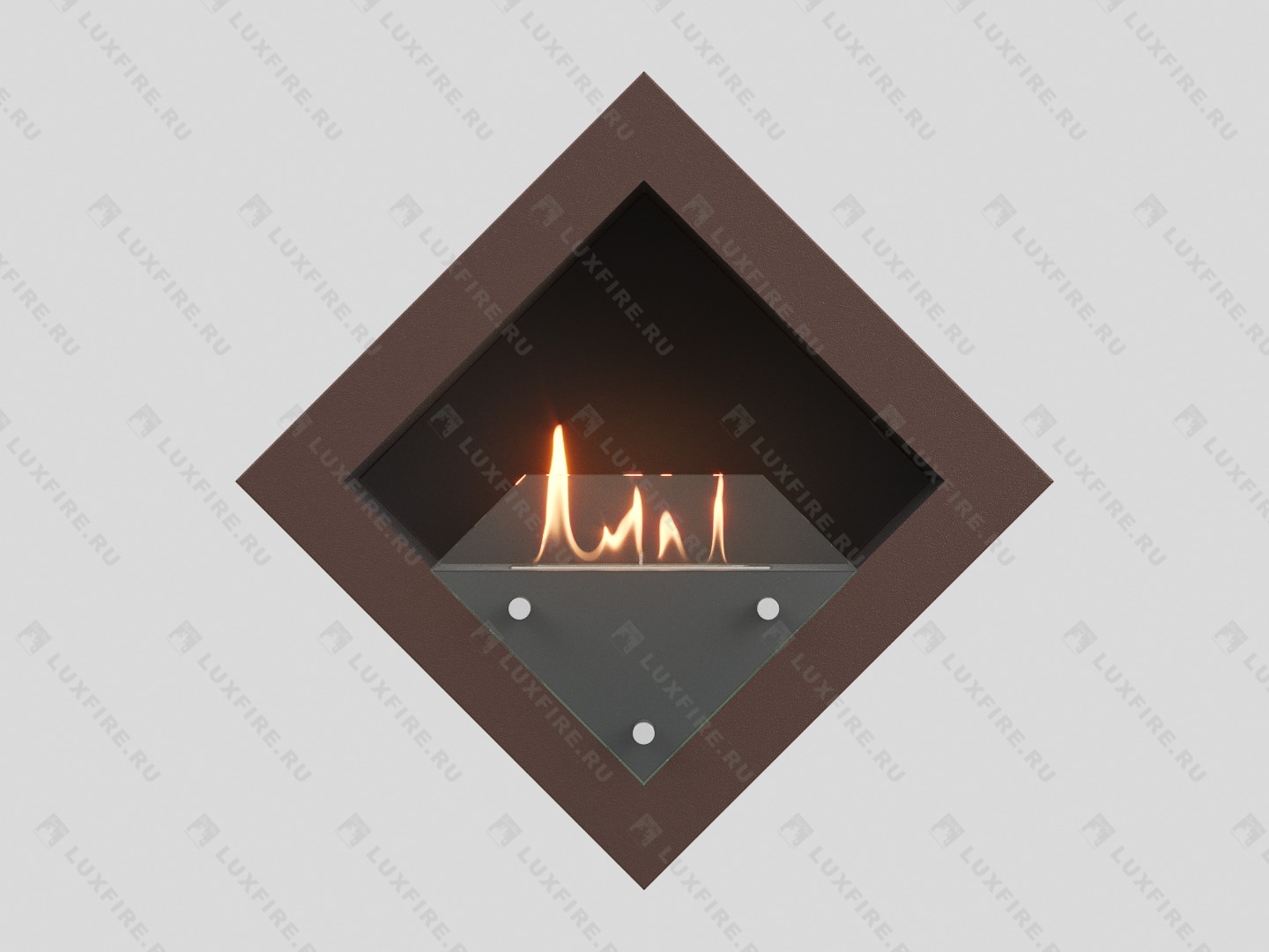Представляет собой цельную металлическую конструкцию класса XS, создающую полузакрытое безопасное пространство для огня. Универсально подходит для встройки в нишу или подвеса на стену.